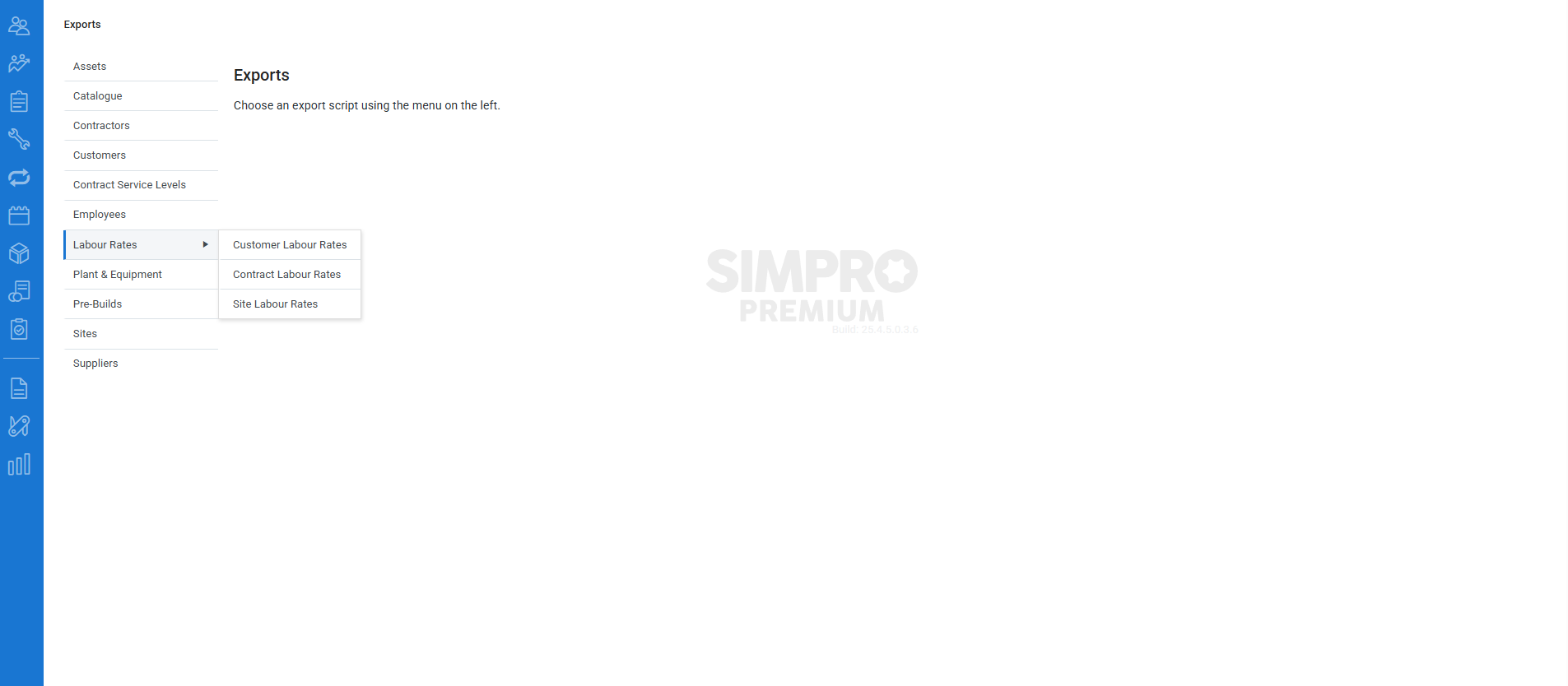 Exporting customer labour rates, contract labour rates, and site labour rates are available.