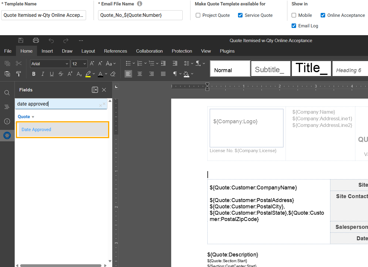Provide even more details on your quote forms by selecting the Date Approved plugin field in Quote Form Builder Templates to display the relevant information on your forms.