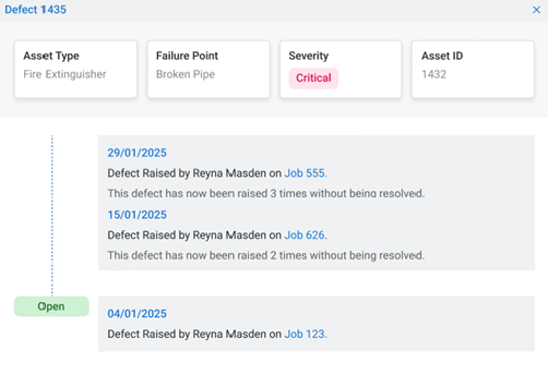 When viewing and managing defects in the Defect Management Module, you are now able to more accurately see an updated historical timeline of a defect if it has been raised multiple times, instead of duplicating the defect which may cause confusion.