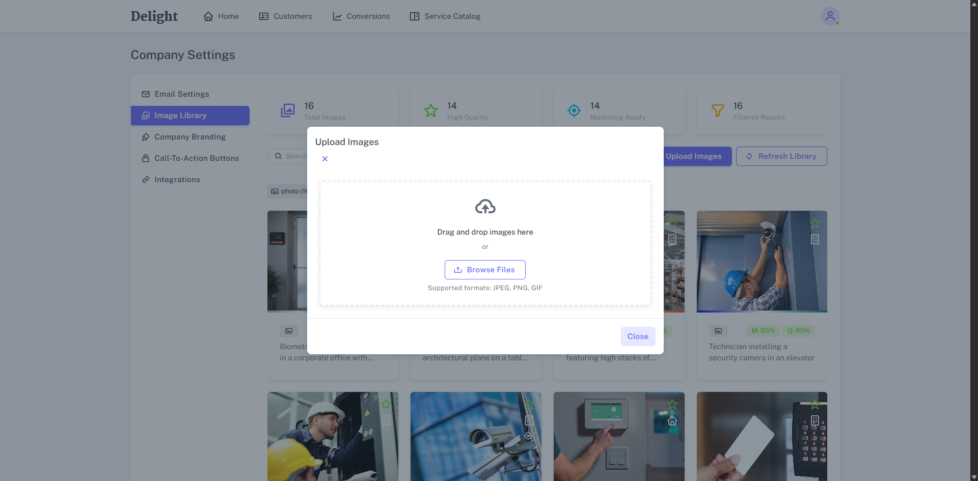 Use the Image Library to add, edit, and delete the images that Delight will use when generating emails.