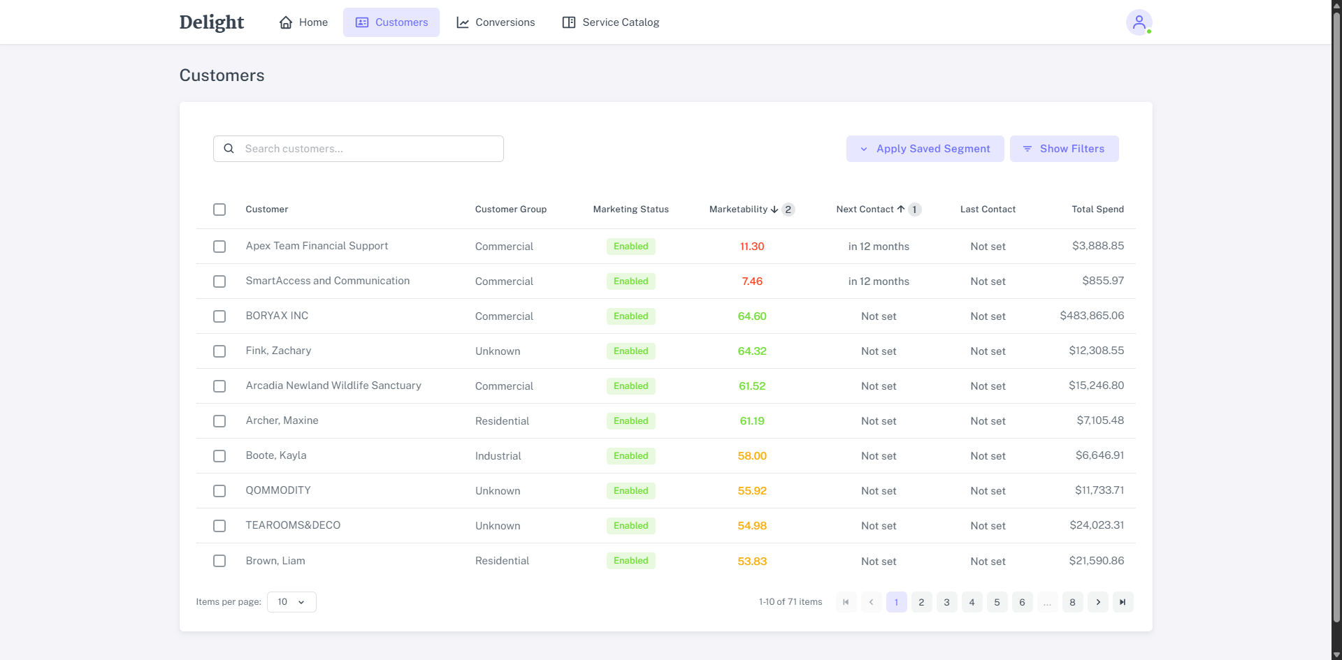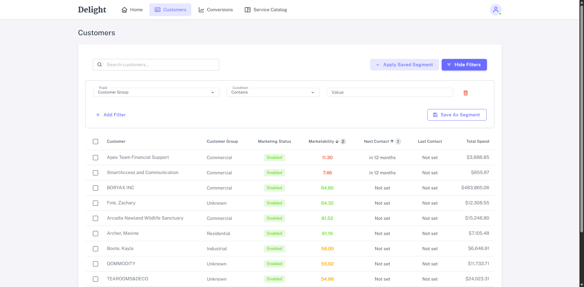Marketability score is Delight’s prediction of how likely emailing a customer is to generate a lead, job, or quote conversion.