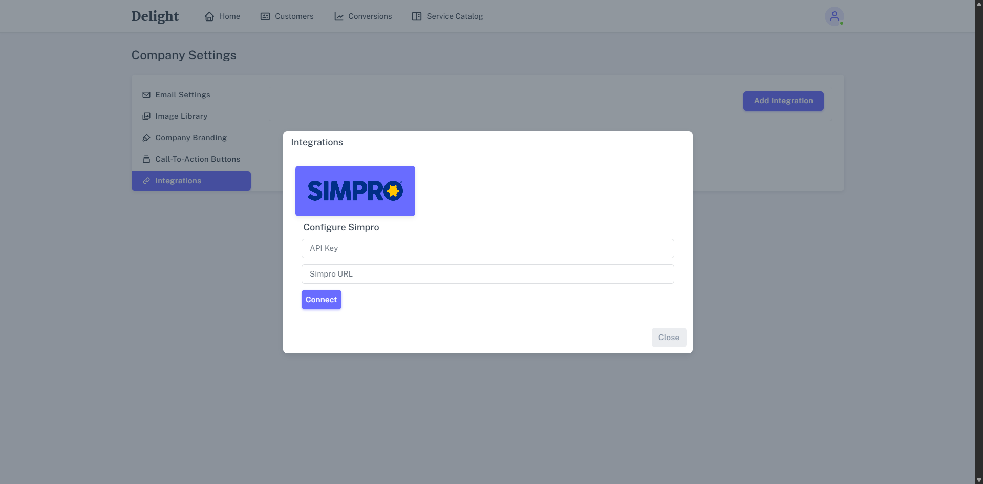 Integrate Delight with Simpro Premium